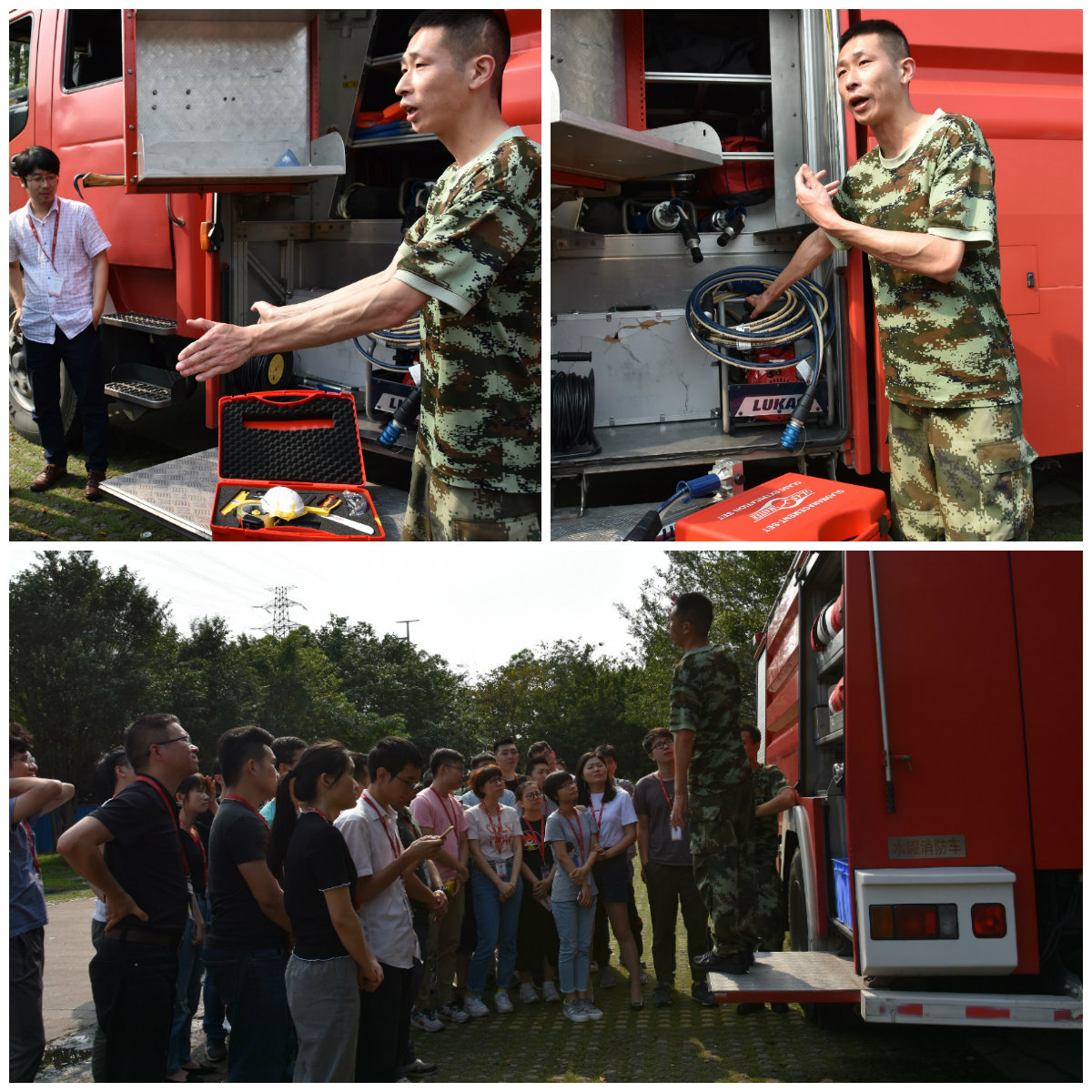 首先苗班長給我們介紹了消防車的內(nèi)部結(jié)構(gòu),并詳細(xì)講解了各種消防設(shè)備的用途和使用場景。第一次有機(jī)會(huì)如此近距離接觸消防車,艾科小伙伴在為種類繁多的消防設(shè)備所震撼的同時(shí),還深深感受到了消防員工作的繁重和艱巨,不禁對逆火英雄消防員們肅然起敬!